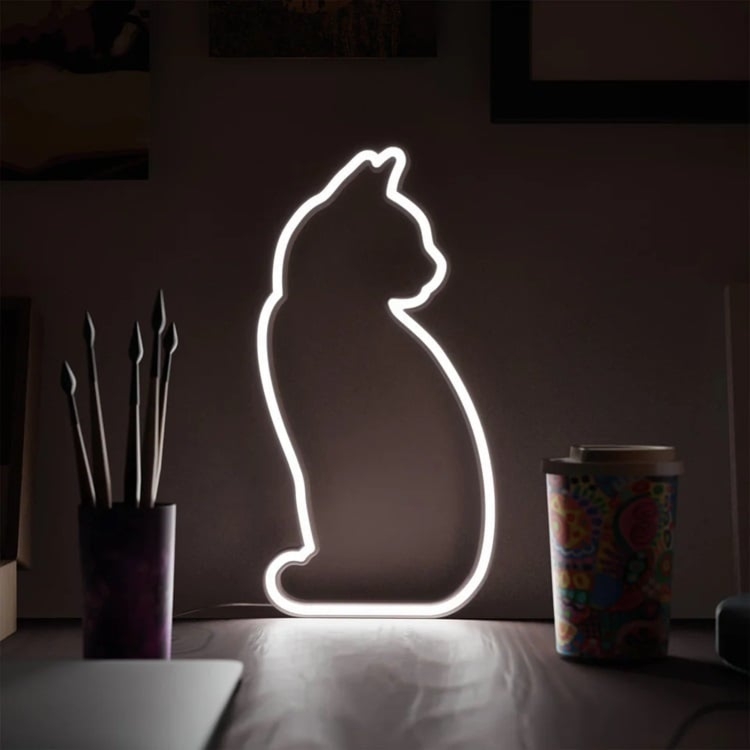 Pewnie zastanawiasz się, co sprawia, że ten neon jest tak wyjątkowy. Przede wszystkim to jego unikalny design, który idealnie balansuje między nowoczesnym minimalizmem a duszą retro. Jest niezwykle lekki i łatwy w montażu, dzięki czemu od razu po rozpakowaniu może ozdobić Twoją ścianę lub biurko. Jednak największą zaletą jest fakt, że to idealna obecność kota w domu bez żadnych obowiązków – zero sprzątania kuwety czy usuwania sierści z ubrań. Po prostu odpalasz go jednym kliknięciem i cieszysz się kojącym światłem, które sprzyja relaksowi po pracy.